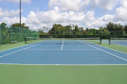 Two lighted tennis courts, two clay baseball diamonds, keyed restrooms, sitting and picnic benches, jungle gym and swings.